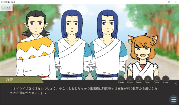 本当はEND9個になる予定でしたが、フラグ管理が難しい、同じ名前で无限を2人出す方法が分からず、別世界の无限を「无限さん」って呼んでもらう?等々考えましたがともかく作業量半端ねぇ!でお蔵入りしました。